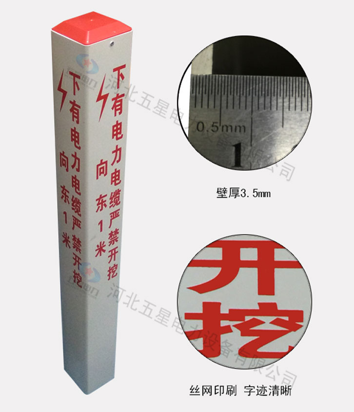塑鋼標(biāo)志樁采用塑鋼材質(zhì)制成,也稱為pvc標(biāo)志樁,樁體為白色,常規(guī)規(guī)格為100mm*100mm、150mm*150mm。塑鋼標(biāo)志樁材質(zhì)輕便、彈性好、耐酸堿、耐腐蝕、抗老化性能好、安裝運(yùn)輸方便,是警示地下管線的標(biāo)識產(chǎn)品,能夠清楚的標(biāo)明管線的鋪設(shè)方向,便于大家區(qū)分不同的管線走向。