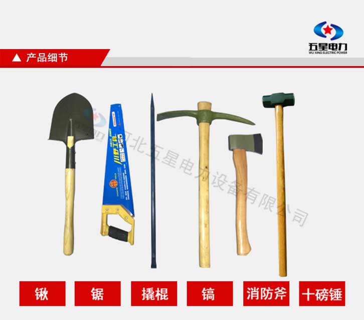 防汛組合工具包六件套:鍬、鎬、消防斧、十磅錘、鋸、撬棍、兩節連接桿、工具包。一柄多用,適用于消防隊員使用