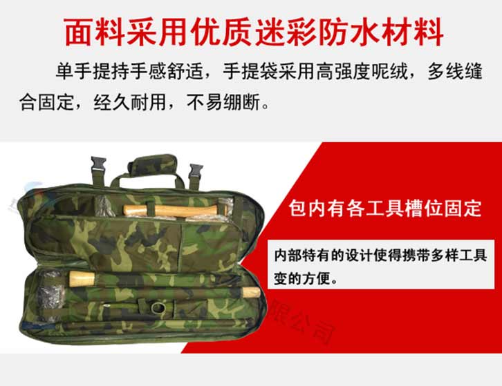 防汛搶險組合式工具包特點:靈活性好,質量可靠,可在惡劣的環境下單兵背負作業,攜帶方便,體積小、相互結合該組合工具配備齊全適用于救援隊員適用。可根據需求定制產品配件及功能性。